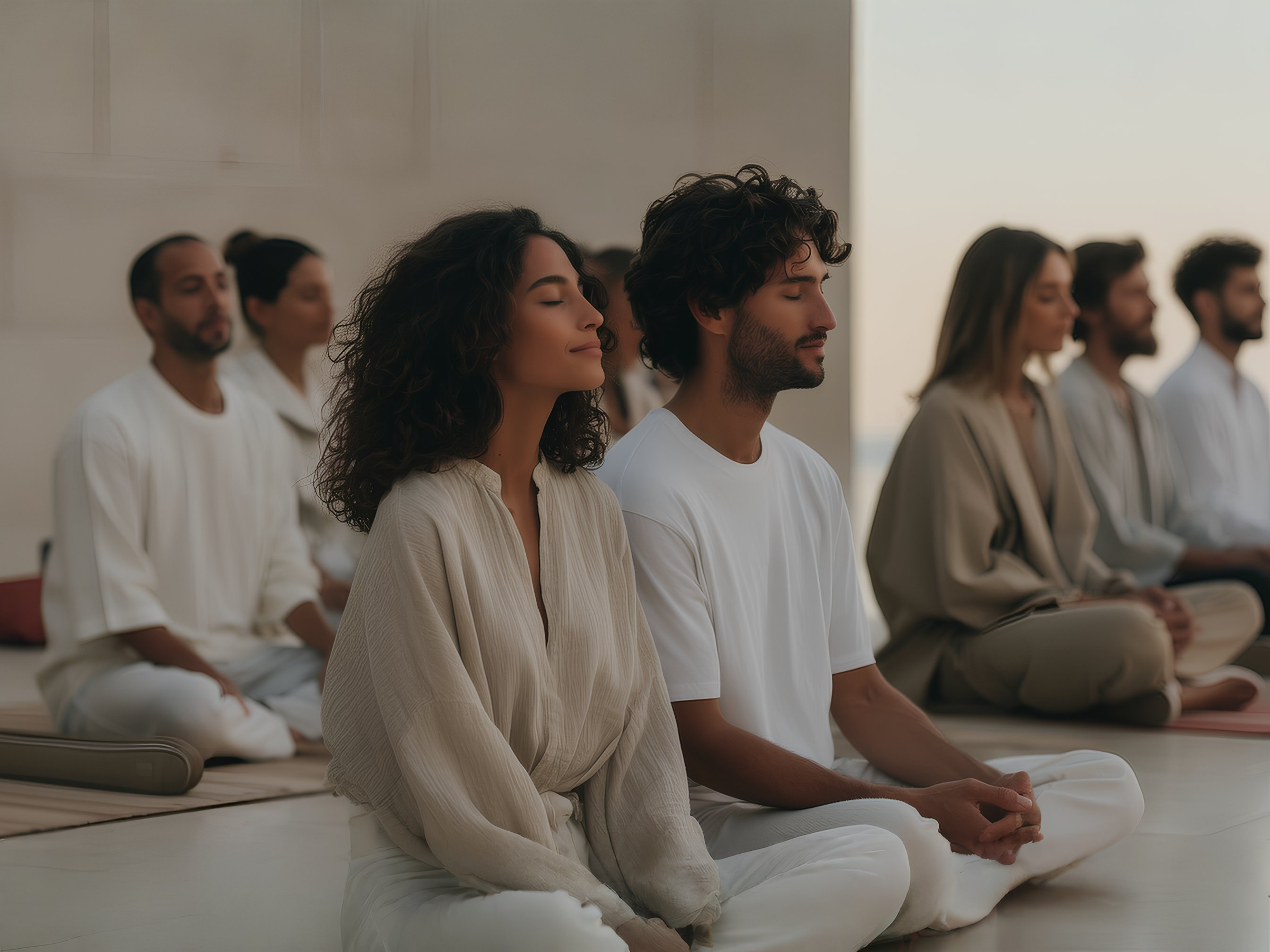 We work with breath, sensation, and simple practices that help the day soften around us.